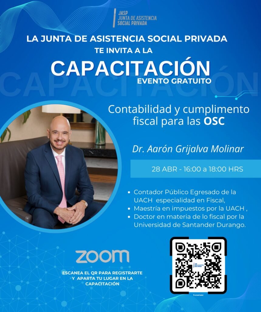 Ciudad Juárez.– La Junta de Asistencia Social Privada lanzó una invitación dirigida a integrantes de organizaciones de la sociedad civil (OSC) para participar en la capacitación gratuita “Contabilidad y cumplimiento fiscal para las OSC”, enfocada en fortalecer la gestión administrativa y financiera del sector. El curso será impartido por el Dr. Aarón Grijalva Molinar, especialista […]