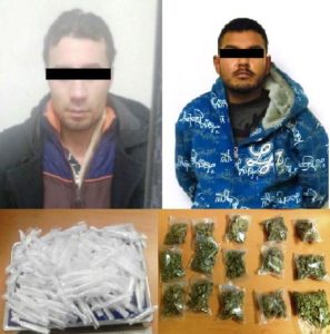 Elementos de la Policía Estatal división Investigación detuvieron la madrugada de este viernes en la avenida Tecnológico y Miguel de Cervantes de esta ciudad a Bartolo L. E alias “El Chapito” y a Edwin Ricardo M. T, alias “El Pescadito”, traían 76 envoltorios de una sustancia en polvo blanco con