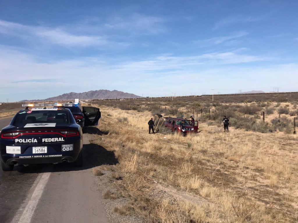 Vuelcan paisanos en la Chihuahua-Juárez
