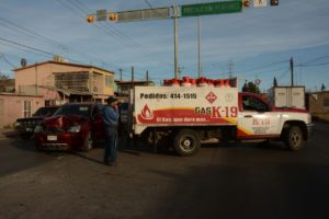 La tarde de este lunes se registró un choque protagonizado por un vehículo particular y un camión repartido de gas de la empresa K-19, en el cruce del periférico Lombardo Toledano y Francisco Villa. El percance se registró cuando la conductora de una camioneta Chevrolet Captiva, con placas EHA 4534,