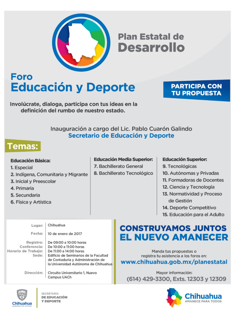 Convocan a participar en Foro de Educación y Deporte del Plan Estatal de Desarrollo