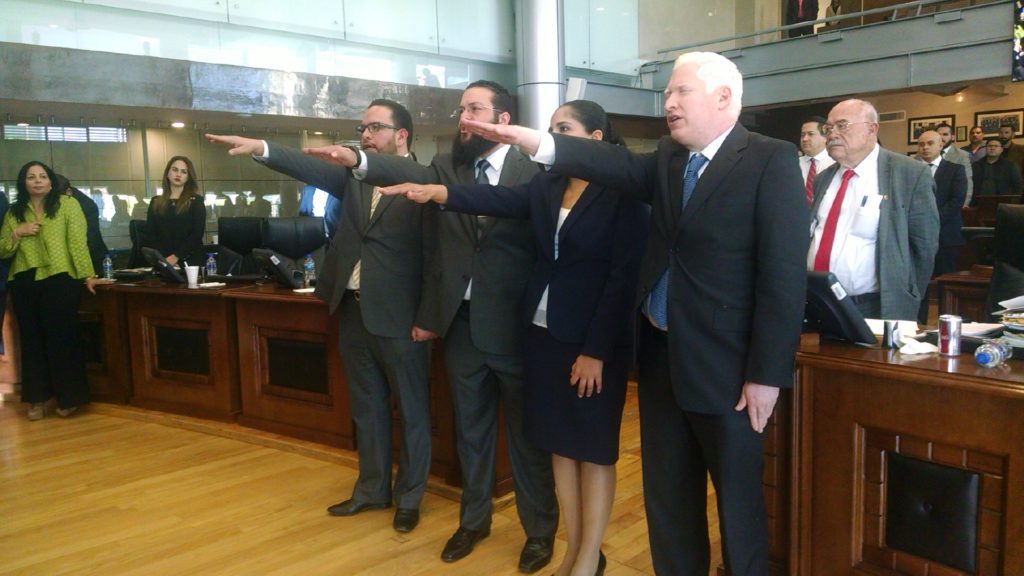 Tras ser electos este jueves como comisionados propietarios y suplentes, Rodolfo Leyva Martínez, Ernesto de la Rocha, Amelia Martínez y Gustavo Esparza acudieron a la sede del Legislativo a fin de rendir la protesta de Ley correspondiente. Es de recordar que este medio día se llevó a cabo la votación por cédula mediante la cual […]