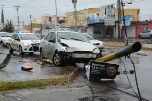 Por pavimento mojado, impacta vs poste en avenida Vallarta