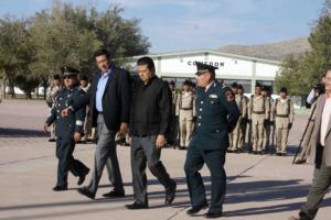 El Presidente Municipal de Juárez, Armando Cabada Alvídrez, atestiguó este día la protesta de bandera de soldados de la 11/a Compañía del Servicio Militar, celebrada en la explanada principal del capo militar de la Guarnición de la Plaza, ubicado al sur de la ciudad. La ceremonia fue encabezada por el