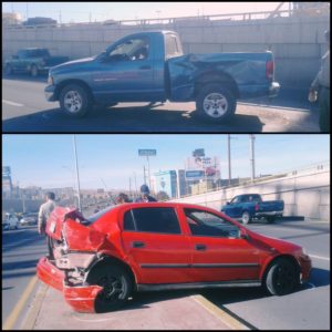 Un auto Astra con placas EJP 8646 que circulaba por el periférico De la Juventud en sentido norte a sur sufrió una falla mecánica en el motor, por lo que tuvo que disminuir la velocidad, pero una Dogde no alcanzó a frenar y lo impactó por la parte trasera. La
