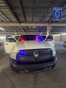 Viajaban en una pick up clonada como unidad policiaca; serán investigados por otros delitos Durante los operativos para la disuasión de delitos en Ciudad Juárez, fueron detenidos dos masculinos mayores de edad, así como un menor de 14 años, a bordo de una pick up RAM clonada como unidad policiaca,