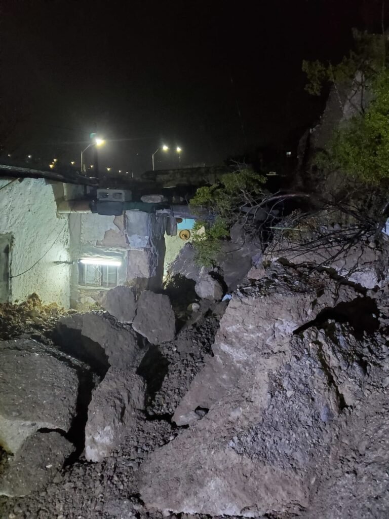 La noche del pasado sábado, en la colonia Fronteriza Baja, personal operativo de Bomberos atendió un derrumbe de tierra proveniente de una loma que provocó el colapso de una pared de adobe de aproximadamente 3 x 3 metros. La estructura afectada se encuentra contigua a un barranco, que debido al reblandecimiento del terreno por las lluvias recientes, presenta un deslave de aproximadamente cinco metros.