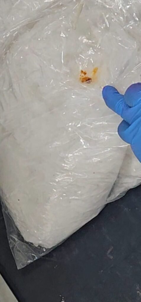 Durante la inspección, los agentes aseguraron un arma de fuego con cargador abastecido, así como una considerable cantidad de droga: más de 37 mil pastillas de fentanilo con un peso superior a cuatro kilogramos, además de cerca de 18 kilogramos de metanfetamina distribuidos en diversos recipientes. También fue asegurado el vehículo en el que se encontraba el detenido.