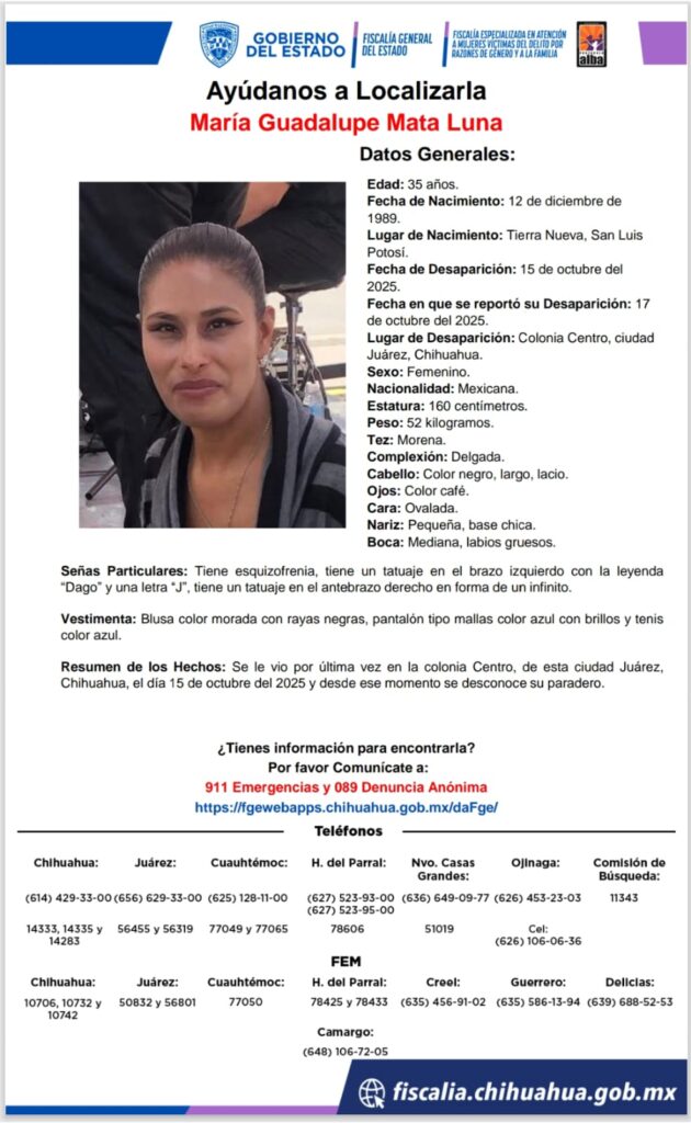 La Fiscalía General del Estado Zona Norte está solicitando el apoyo de la ciudadanía para localizar a una mujer de 35 años de edad quien desapareció hace unos días en la zona centro de esta frontera. El día de hoy se dio a conocer la pesquisa de esta mujer y a través de un flyer […]