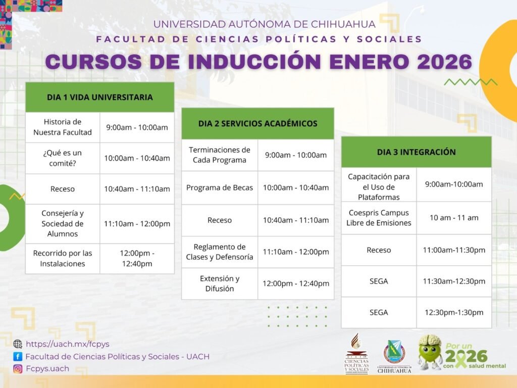 La Universidad Autónoma de Chihuahua dará inicio con los cursos de inducción del Campus Juárez para la modalidad presencial, estos se llevarán a cabo los días 21, 22 y 23 de enero, con el objetivo de dar la bienvenida y orientar a las y los estudiantes de nuevo ingreso sobre su vida universitaria. Estas actividades […]