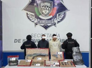 Un operativo de la Secretaría de Seguridad Pública del Estado (SSPE) en Ciudad Juárez derivó en la detención de dos individuos y el aseguramiento de diversas armas, droga y equipo táctico, luego de que un reporte al 9-1-1 alertara sobre detonaciones y sujetos armados en la vía pública. Elementos estatales