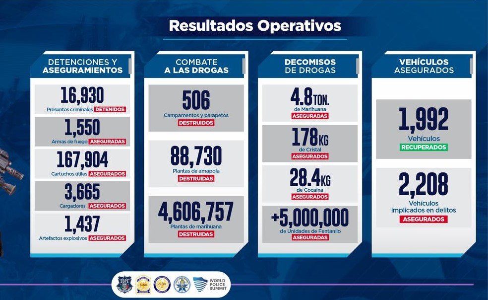 Se aseguraron 550 armas, 167 mil cartuchos y mil 437 artefactos explosivos: SSPE