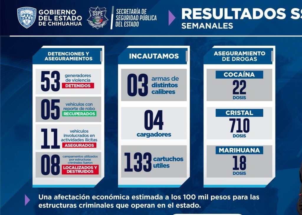 La Secretaría de Seguridad Pública del Estado reportó la captura de 53 presuntos generadores de violencia durante la semana del 15 al 22 de febrero, como resultado de operativos estratégicos basados en inteligencia, coordinación interinstitucional y tecnología. Dentro de estas acciones, Ciudad Juárez destacó por la detención de un hombre con orden de aprehensión por […]