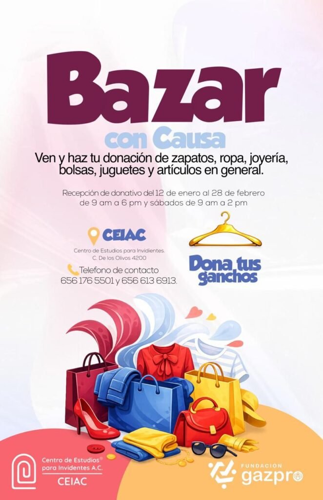 El Centro de Estudios para Invidentes A.C. (CEIAC) llevará a cabo un Bazar con Causa, con el objetivo de recaudar donativos que apoyen sus actividades y programas. La invitación está abierta a la comunidad para participar mediante la donación de diversos artículos en buen estado.