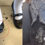 Vía TikTok, una amiga de la “víctima” compartió cómo luce el zapato luego de estar algunos minutos en el patio de la escuela.