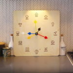 Este reloj implementa íconos en lugar de los números que dan la hora.
