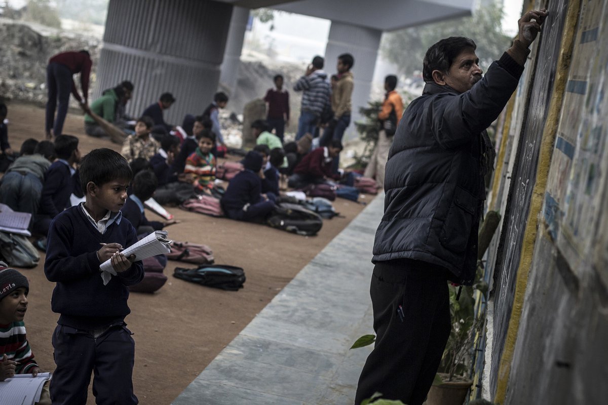 Rajesh Sharma posee una tienda de comestibles pero, desde hace siete años, también imparte clases a los menores de los barrios más pobres de Nueva Deli bajo uno de los puentes de esa ciudad, informa Buzzfeed.