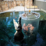 Al comenzar, la jaula con los osados visitantes cuelga por encima del agua mientras que los cocodrilos se alimentan delante de sus ojos. Después, el recinto se sumerge en el agua y el enorme animal puede acercarse a una distancia ínfima.