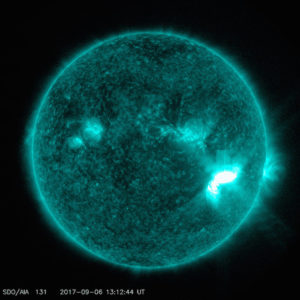 A comienzos de septiembre ocurrió una serie de potentes llamaradas solares que alcanzaron una intensidad X9,3, registrándose así la fulguración más potente de los últimos 12 años.