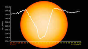 El satélite Experimento de Radiación y Clima Solar (SORCE) de la NASA lleva los registro de la intensidad de la luz ultravioleta (UV) procedente del Sol. Los registros del SORCE correspondientes a septiembre muestran una caída del nivel UV durante las llamaradas ocurridas a comienzos del mes, atribuidas al efecto de las manchas solares.