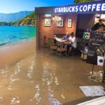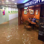 A este hombre que se hallaba en un establecimiento de café en Hong Kong, China, parece no importarle que todo el piso del lugar se encuentre inundado.