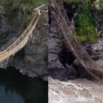 El último puente colgante inca, con más de 600 años de antigüedad, que cruzaba sobre el río Apurímac, en la región peruana de Cusco, cayó destruido sobre el caudal, dado que toda su estructura era de paja tejida y solía ser renovada anualmente en una ceremonia, declarada patrimonio cultural de la humanidad.