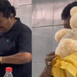 En el video se observa cómo el familiar se pone a llorar al escuchar la voz de su esposa, a través del osito de peluche.