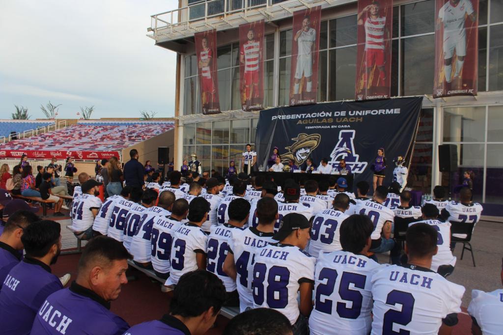 Con el patrocinio de la organización Caudillos de Chihuahua, fue presentado el equipo de Las Águilas de la Universidad Autónoma de Chihuahua, en un acto donde se hizo entrega a los jugadores de jerseys y cascos para la próxima temporada del futbol americano de la ONEFA, Zona Norte.