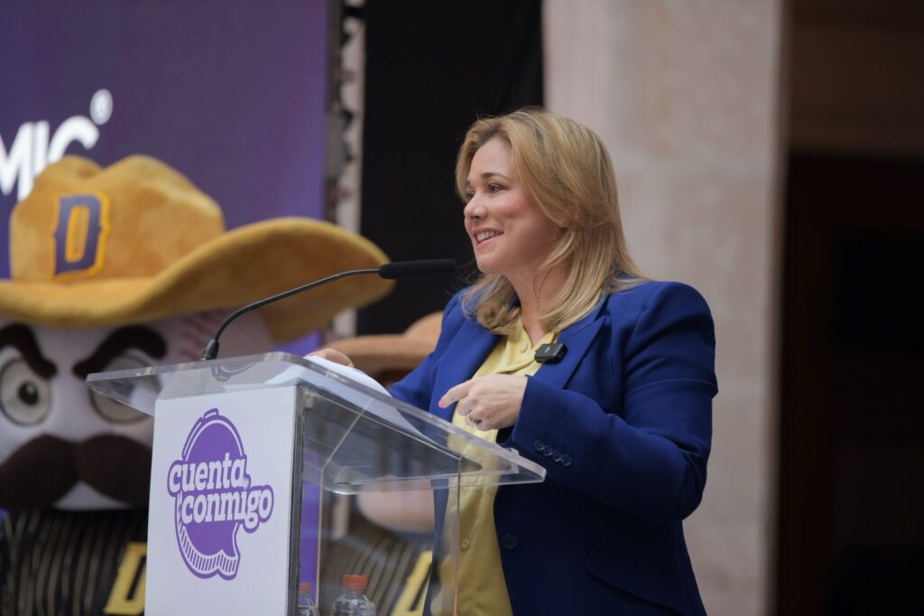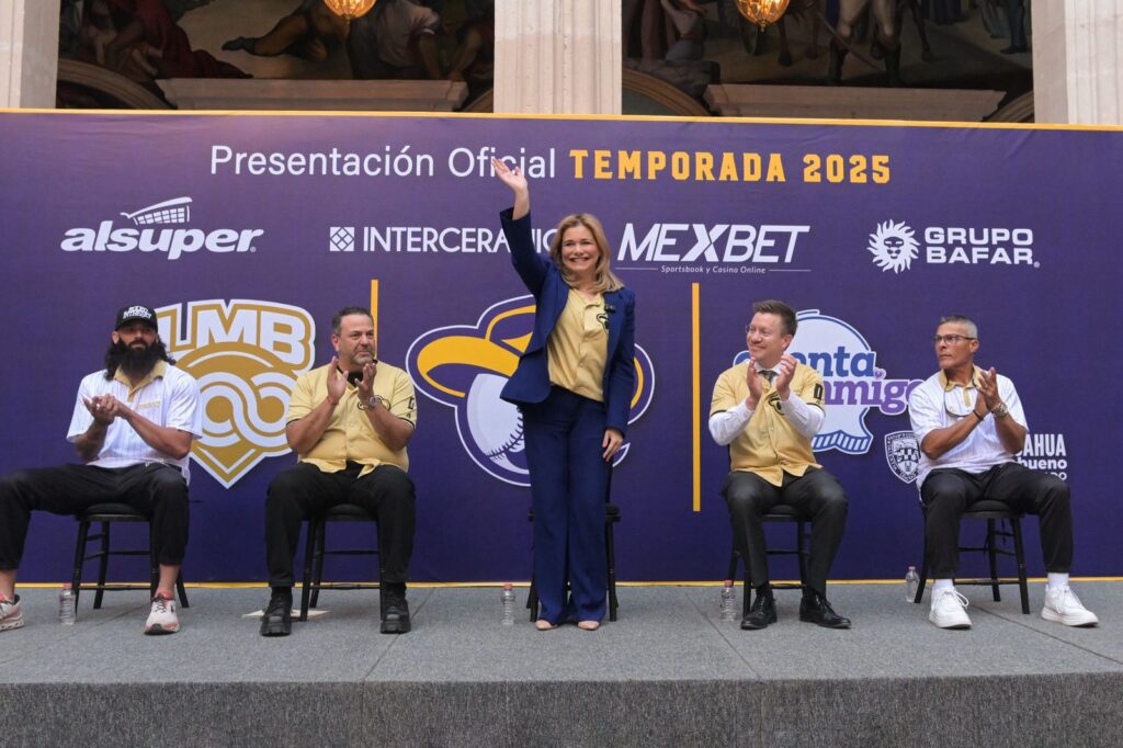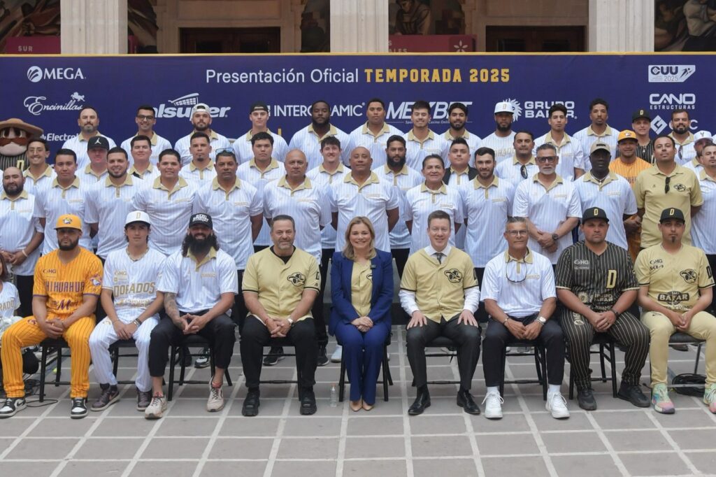 La gobernadora Maru Campos, acompañó al staff y jugadores del equipo Dorados de Chihuahua, en la presentación oficial de la temporada 2025, de la Liga Mexicana de Beisbol (LMB).