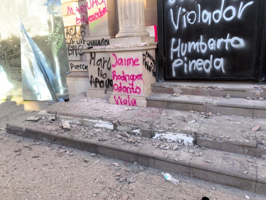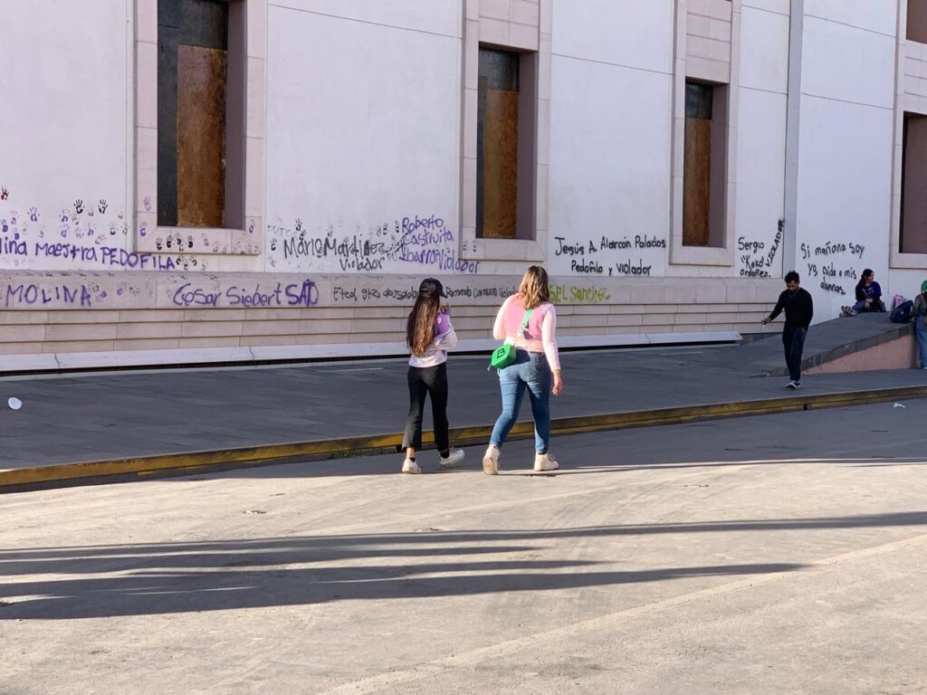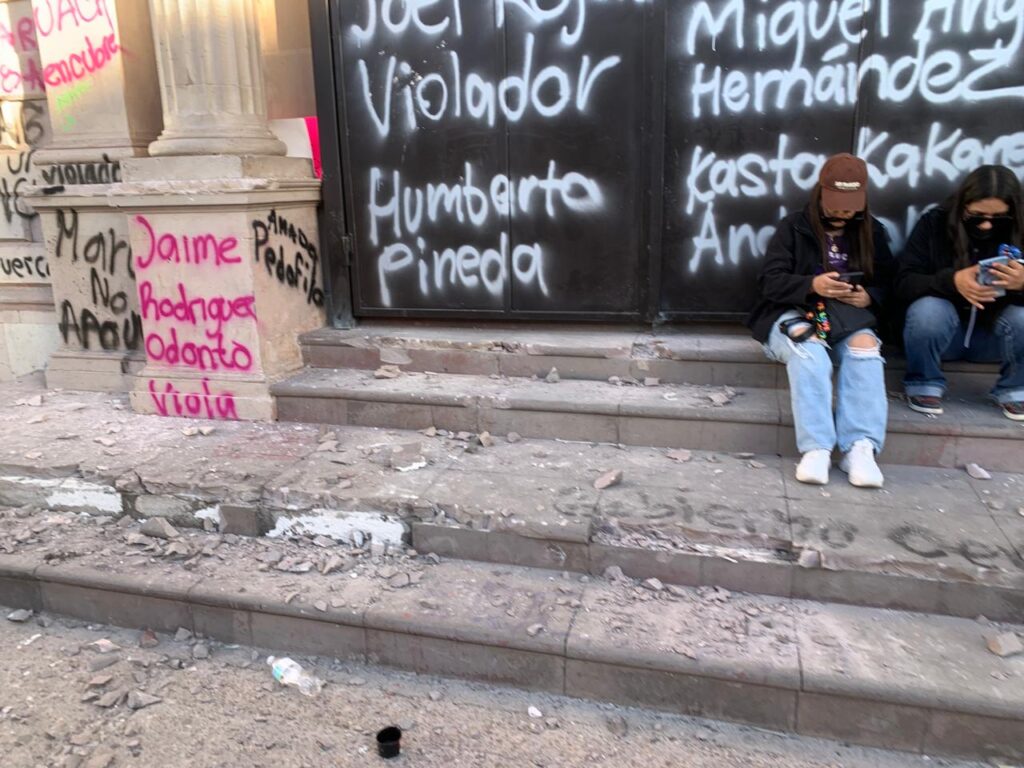 En la zona de Rectoría, otra de las áreas resguardadas con vallas metálicas, algunas mujeres lograron debilitarlas como acto simbólico contra las barreras físicas e institucionales que enfrentan día a día. Sin embargo, la manifestación continuó de forma pacífica, centrada en visibilizar la deuda de justicia que persiste en el estado.