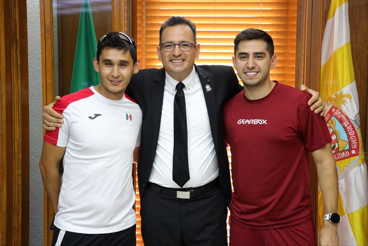 El alcalde, Marco Bonilla, se reunió con dos atletas de alto rendimiento que han puesto en alto el nombre de Chihuahua Capital a nivel mundial, el raquetbolista, Rodrigo Montoya Solís, y el marchista Julio César Salazar Enríquez.