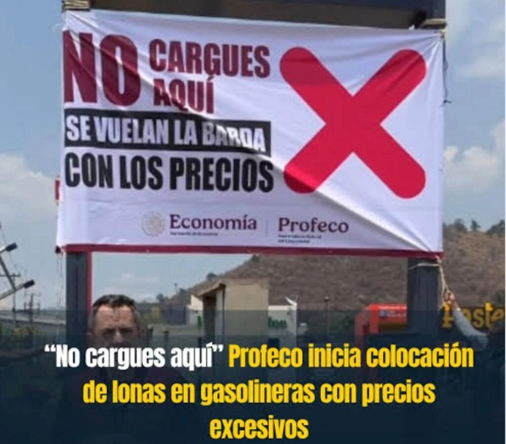 En 18 gasolineras, la Profeco colocó lonas con el mensaje “No cargues aquí, se vuelan la barda con los precios”, tras verificar que los costos superaban lo justificado por su margen de ganancia. Estas acciones se realizaron en establecimientos donde el precio de la gasolina regular excedía los 24 pesos por litro y el diésel los 29 pesos. Las lonas fueron colocadas en estaciones ubicadas en Aguascalientes, Ciudad de México, Coahuila, Estado de México, Guanajuato, Hidalgo, Morelos, Nayarit, Puebla, Querétaro y Sinaloa.
