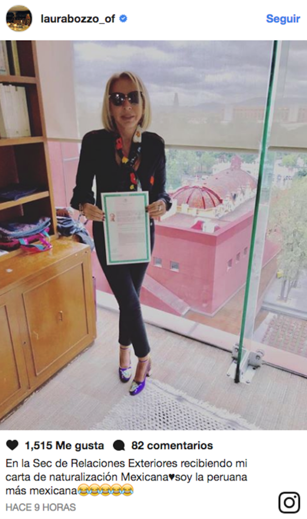 A partir de este día, la conductora de origen peruano, Laura Bozzo, se convirtió en mexicana tras recibir de la Secretaría de Relaciones Exteriores su carta de naturalización.