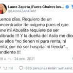 “Buenos días. ¡¡¡Requiero de un concentrador de oxígeno pues el que tiene mi Abuelita requiere de ser calibrado!!! Y la dueña del Asilo me dice que ellos “no tienen ni para renta, ni venta, por no ser hospital ni tienda”, escribió la actriz en redes sociales.
