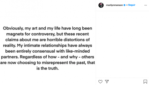 Manson fue despedido de la agencia CAA y sus apariciones en ‘American Gods’ y ‘Creepshow’ fueron suprimidas. El cantante ha negado las acusaciones, respondiendo también en Instagram.