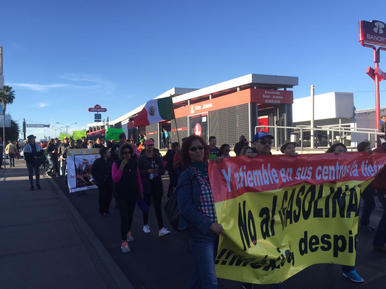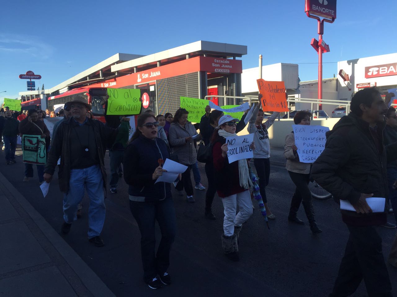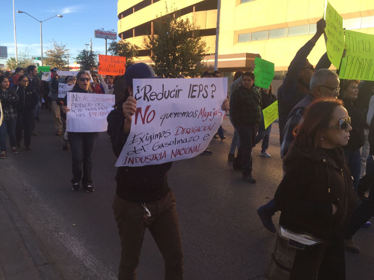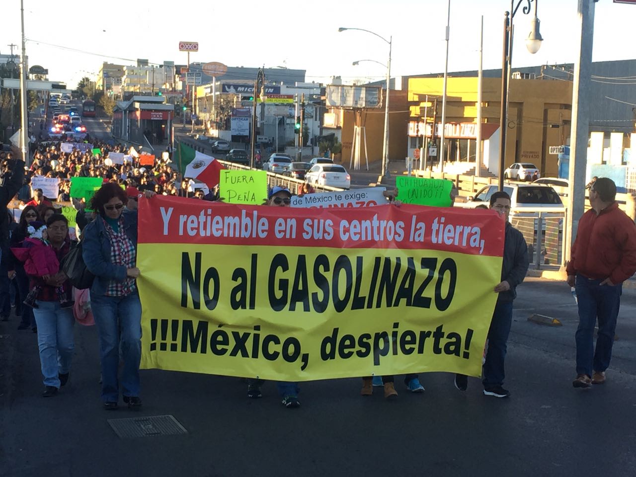 Al filo de las 16:00 horas en la glorieta de Pancho Villa ubicada en la División del Norte y Universidad, chihuahuenses alzaron la voz y marcharon contra el ‘gasolinazo’ puesto por el presidente de México, Enrique Peña Nieto.