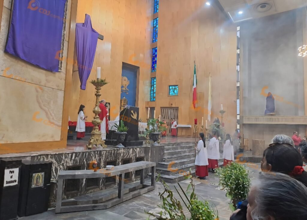 Este domingo decenas de fieles católicos se dieron cita en la catedral de Nuestra Señora de Guadalupe para estar presentes en la celebración del Domingo de Ramos. Todos los presentes sostenían las palmas, rosarios, imágenes así como ramos sobre sus manos, los católicos se concentraron en el atrio de la catedral, para que fueran bendecidos por la máxima autoridad eclesiástica.