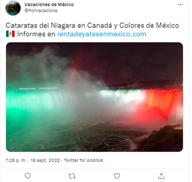 Canadá no se quedó atrás, pues las conocidas Cataratas del Niágara vistieron los colores de la bandera de México.