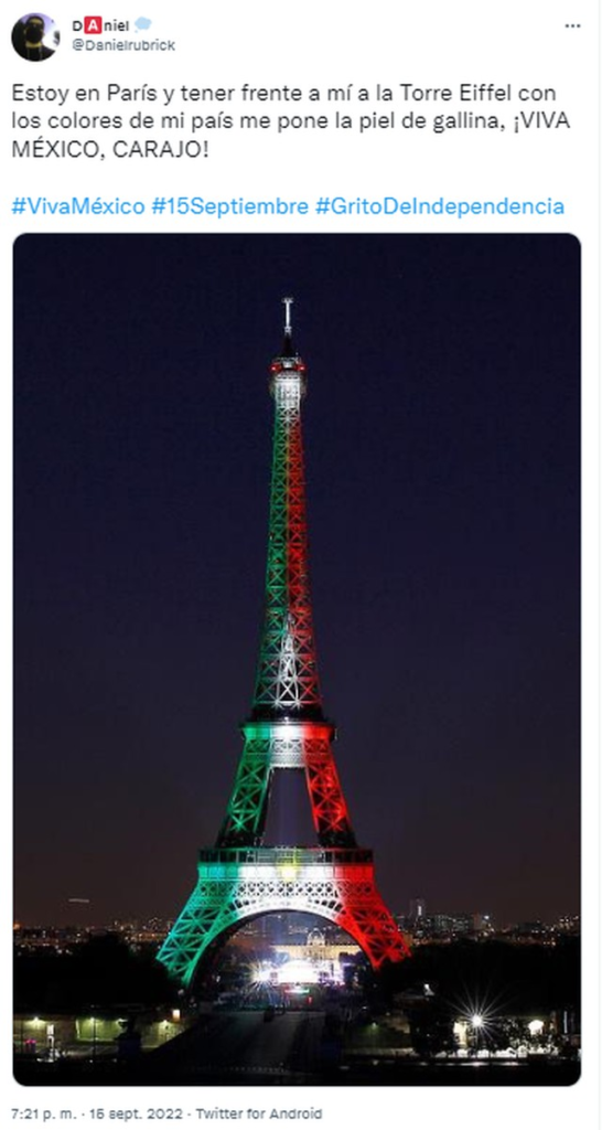 Cada año la torre de Francia se ilumina con el lábaro patrio y este año no fue la excepción, ya que el monumento vistió el verde, blanco y rojo.