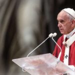 Solo unas 100 personas, todas con máscaras, estaban en la congregación socialmente distanciada para la Misa en el Altar de la Cátedra en la Basílica de San Pedro. Dos docenas de cardenales, también con máscaras, concelebraron.