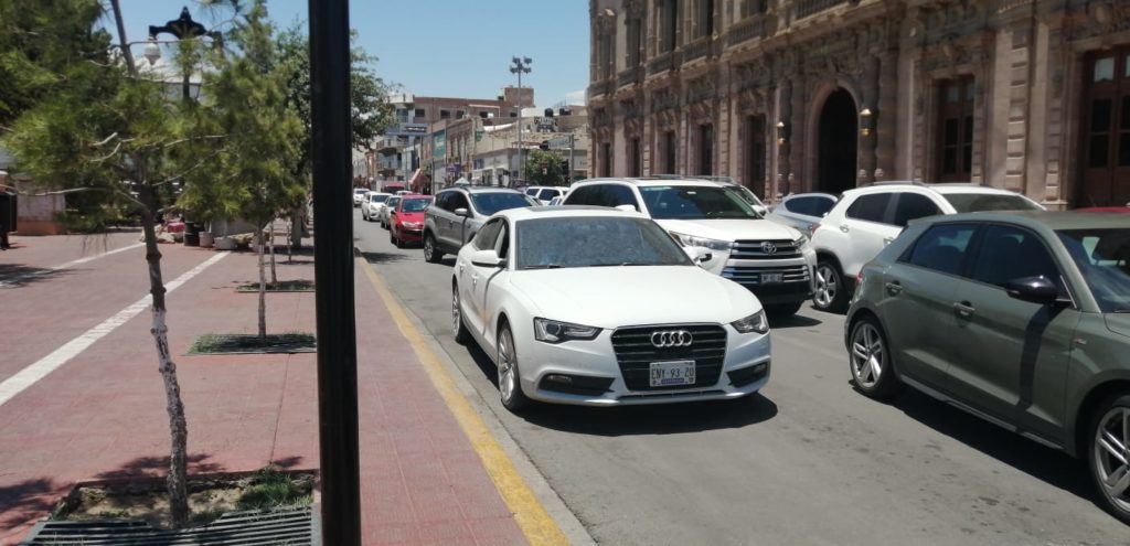 Fueron tres personas las que con una manta exigieron ser atendidos por la gobernadora Maru Campos, además de que cerraron un carril de la calle Venustiano Carranza.