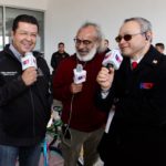 Acompañan al Presidente Municipal en el arranque de la campaña Alejandro Velasco, director de noticias de Radio Net y Víctor López, gerente de ventas de Radio Net; la directora del Cereso Estatal Femenil 2, Carla Cecilia Pacheco y la primera gobernadora de la colonia Tarahumara, María Isidora Pérez.