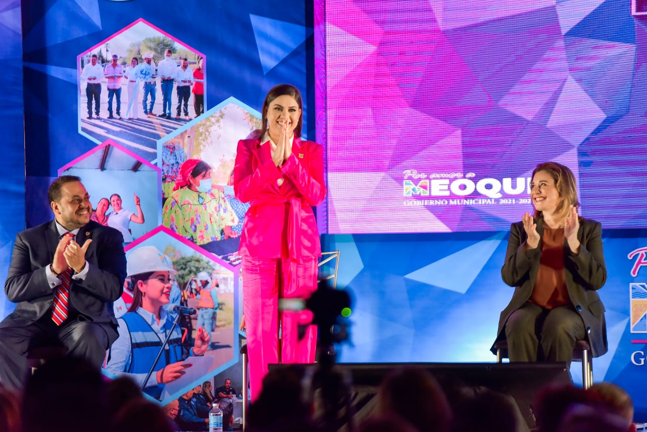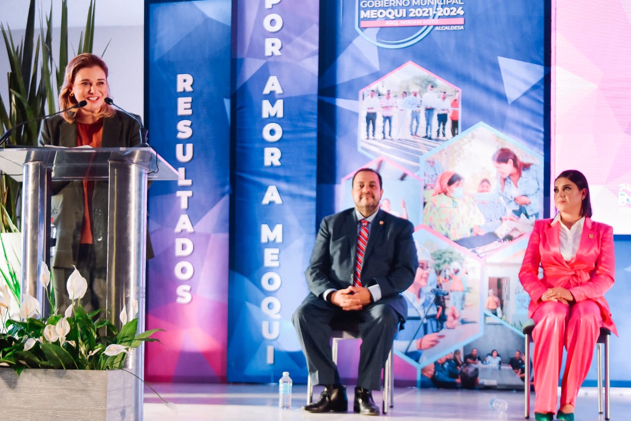 Al participar como invitada especial en el 1º Informe de Gobierno de la alcaldesa de Meoqui, Miriam Soto Ornelas, la gobernadora Maru Campos Galván anunció que se invertirán más de 40 millones de pesos (mdp) en la rehabilitación del Acceso Norte y de la calle Aldama, en la cabecera municipal.