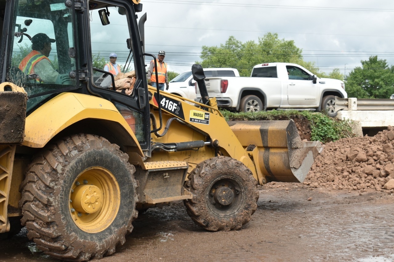En el caso concreto del puente ubicado en el kilómetro 10 de la carretera hacia Álvaro Obregón sentido directo, se realizaron trabajos de relleno con material pétreo en el lateral de la rampa de acceso, principalmente para controlar la socavación derivada del alto flujo de agua, así como la recarga de material en el talud para mantenerlo estabilizado.