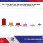 Según la más reciente encuesta de Massive Caller de cara a la renovación de la gubernatura de Chihuahua, señala que la candidata del PAN-PRD, Maru Campos, aventaja por poco más de un 11 puntos al candidato de Morena, PT y Nueva Alianza, Juan Carlos Loera.