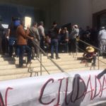 Alrededor de veinte elementos de la Policía Estatal se reunieron en las inmediaciones de las oficinas de la recaudación de rentas, por lo que lis manifestantes se prepararon para el desalojo y manifestaron que no provocarían violencia, pero continuarían con las acciones de resistencia.