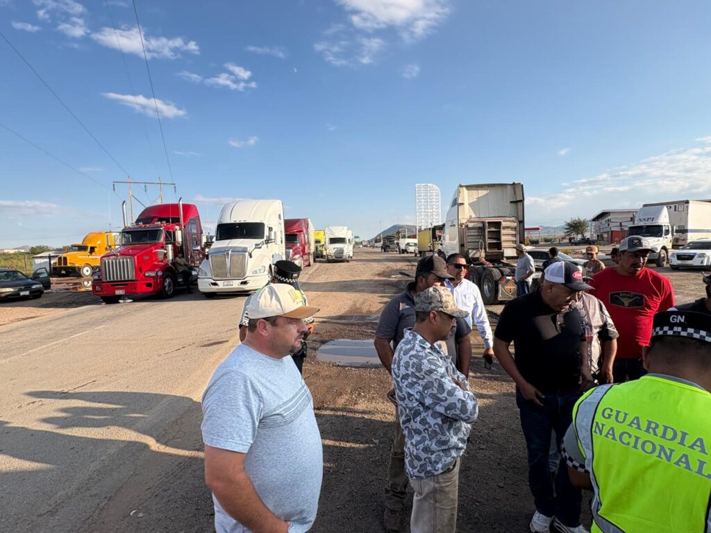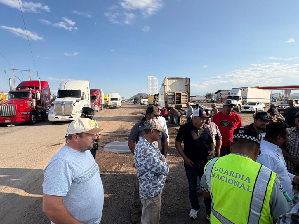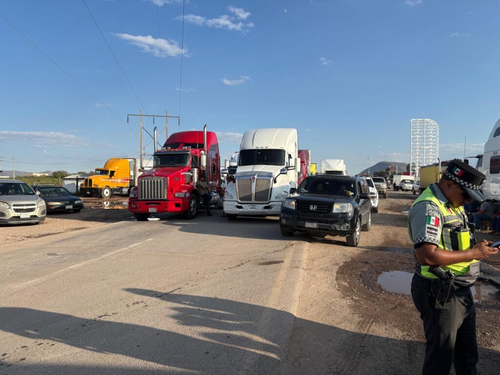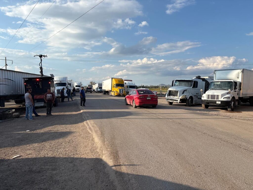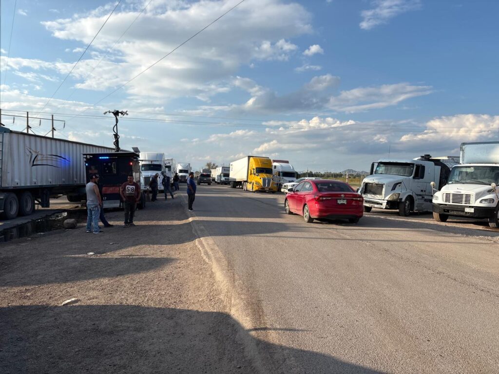 La tarde de este martes, un grupo de transportistas bloqueó la carretera a Ciudad Juárez a la altura del kilómetro 32, en el tramo entre la caseta de peaje Sacramento y el entronque de la vía corta, lo que afectó tanto la autopista como la carretera libre.