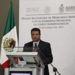 El Presidente Municipal Armando Cabada Alvídrez encabeza el encuentro y dirige un mensaje a los presentes en el que señala que esta reunión tiene por objetivo consolidar la relación con el gobierno federal.