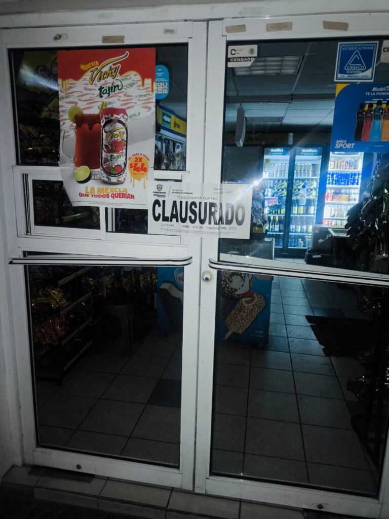 En la frontera, las clausuras incluyeron tiendas de abarrotes con violaciones de giro, establecimientos que operaban con copia simple de la licencia de alcohol, salones de eventos que funcionaban sin permiso, así como un restaurante bar con menores de edad laborando y un centro nocturno donde se registró una riña.