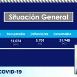 El doctor Valenzuela indicó que hay 31 mil 940 (+17) casos descarados, mil 701 (+26) sospechosos y 51 mil 074 (+57) personas que se han recuperado de la enfermedad.